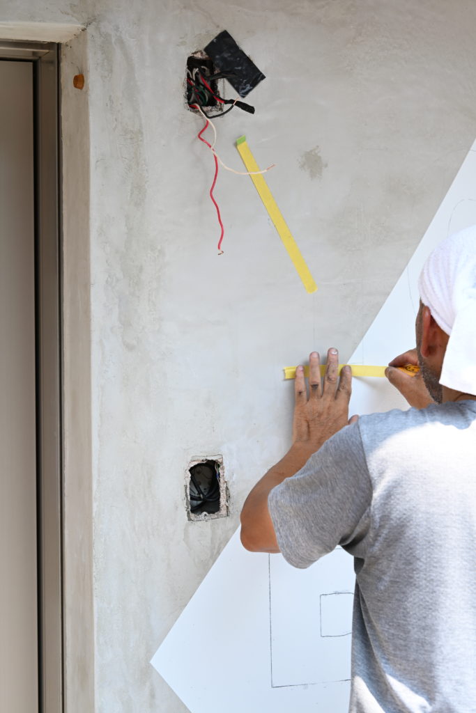 さらに壁面には職人の手作業でスローガンをペイント。少しにじんだ質感も味わいになって機械では出せない温かみのある仕上がりになりました。